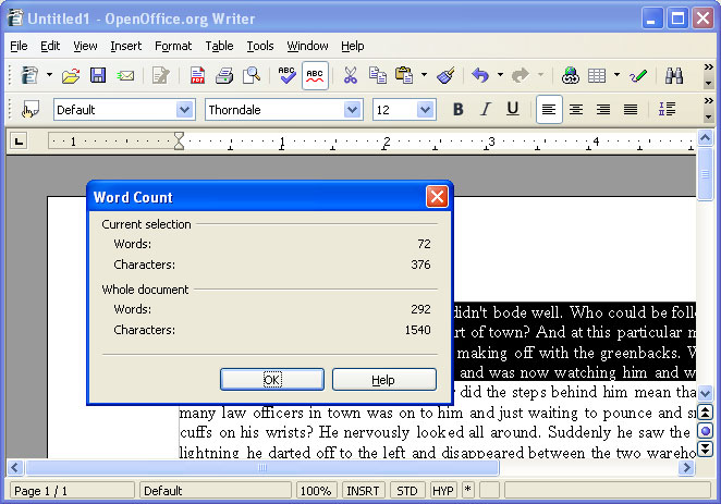 impossible to count the number of words in a selection. OpenOffice.org 2.0